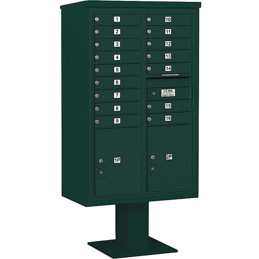 SALSBURY INDUSTRIES 3414D-16GRN Pedestal Mailbox 18 Doors Green 66-3/4 Inch
