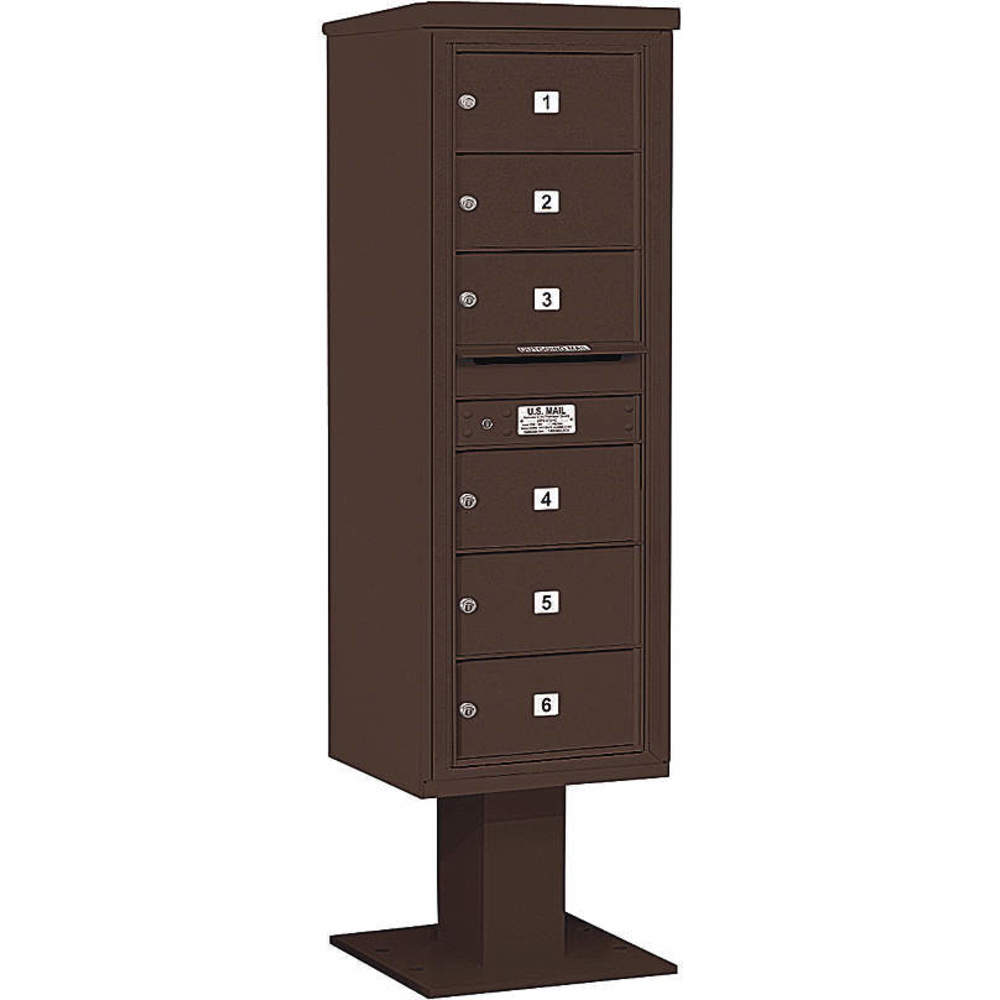 SALSBURY INDUSTRIES 3414S-06BRZ Pedestal Mailbox 6 Doors Bronze 66-3/4 Inch