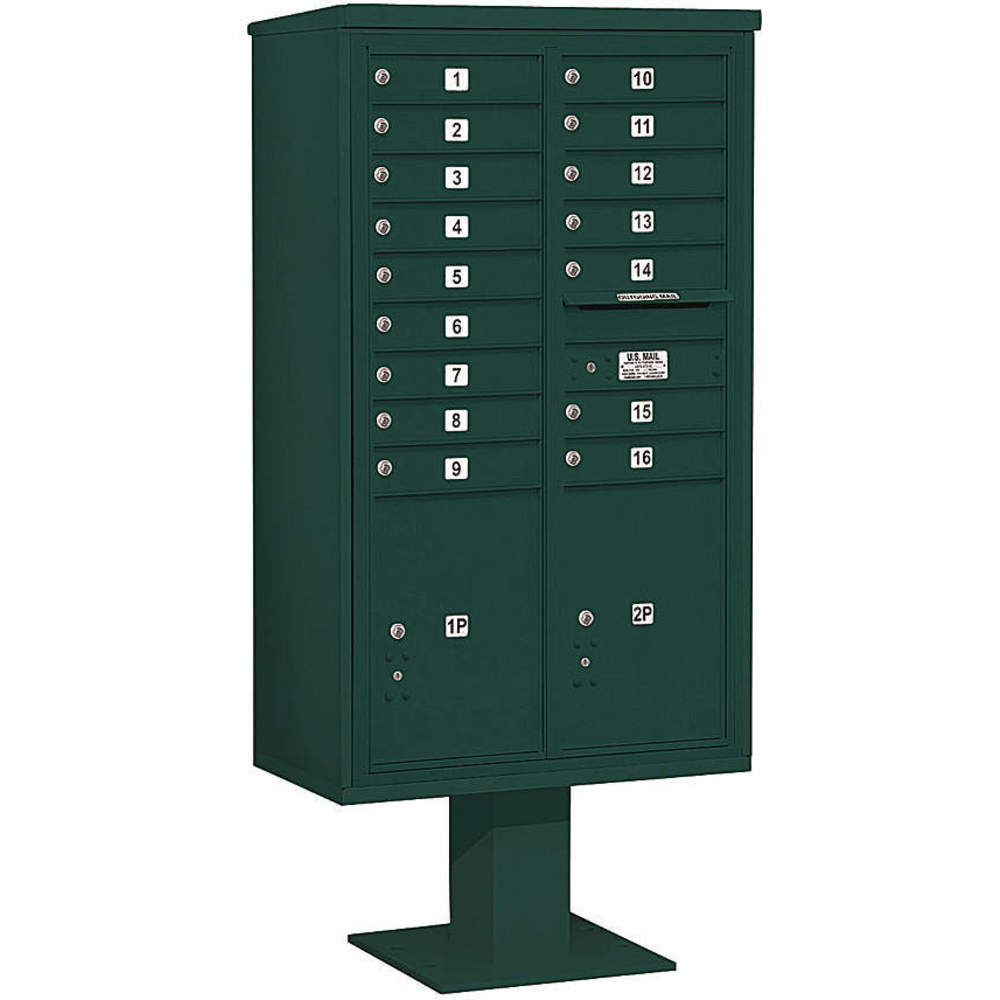 SALSBURY INDUSTRIES 3415D-16GRN Pedestal Mailbox 18 Doors Green 70-1/4 Inch