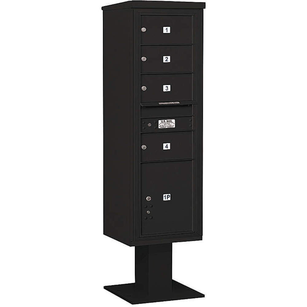 SALSBURY INDUSTRIES 3415S-04BLK Pedestal Mailbox 5 Doors Black 70-1/4 Inch