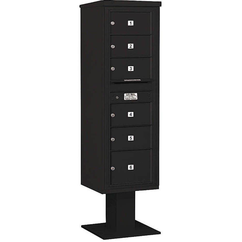 SALSBURY INDUSTRIES 3415S-06BLK Pedestal Mailbox 6 Doors Black 70-1/4 Inch
