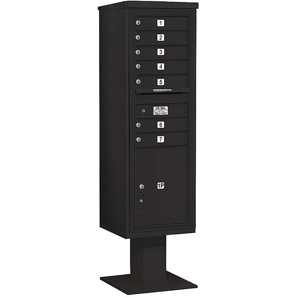 SALSBURY INDUSTRIES 3415S-07BLK Pedestal Mailbox 8 Doors Black 70-1/4 Inch