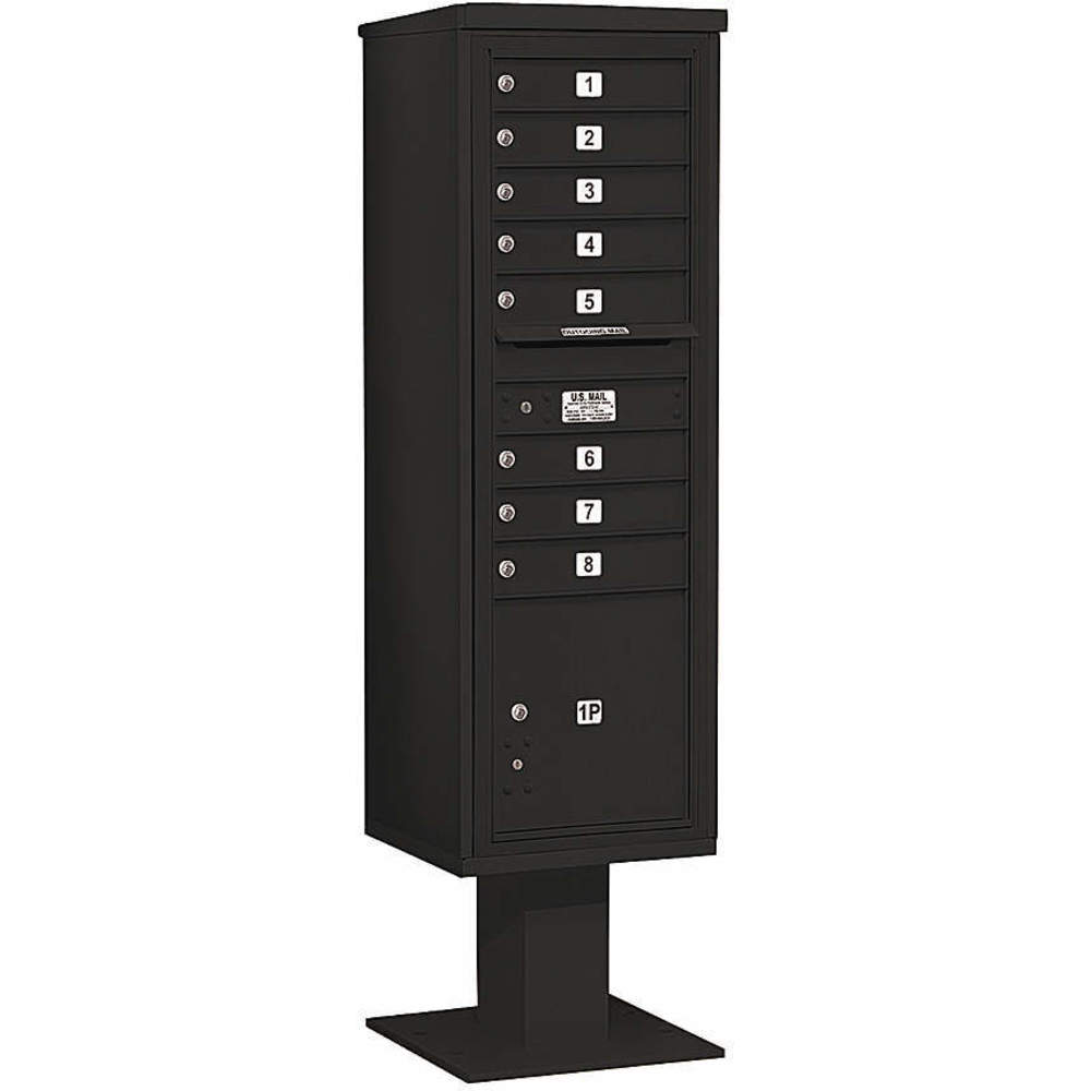 SALSBURY INDUSTRIES 3415S-08BLK Pedestal Mailbox 9 Doors Black 70-1/4 Inch