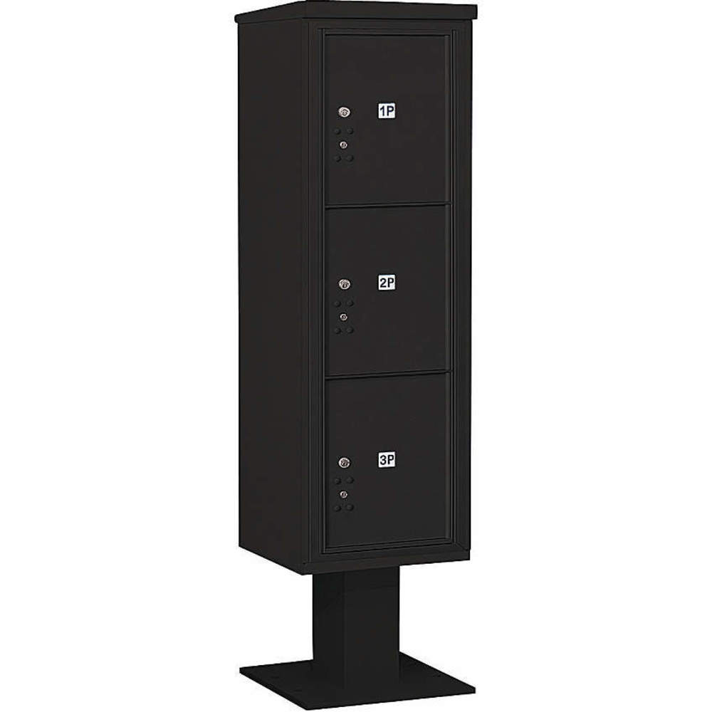 SALSBURY INDUSTRIES 3415S-3PBLK Pedestal Mailbox 3 Doors Black 70-1/4 Inch