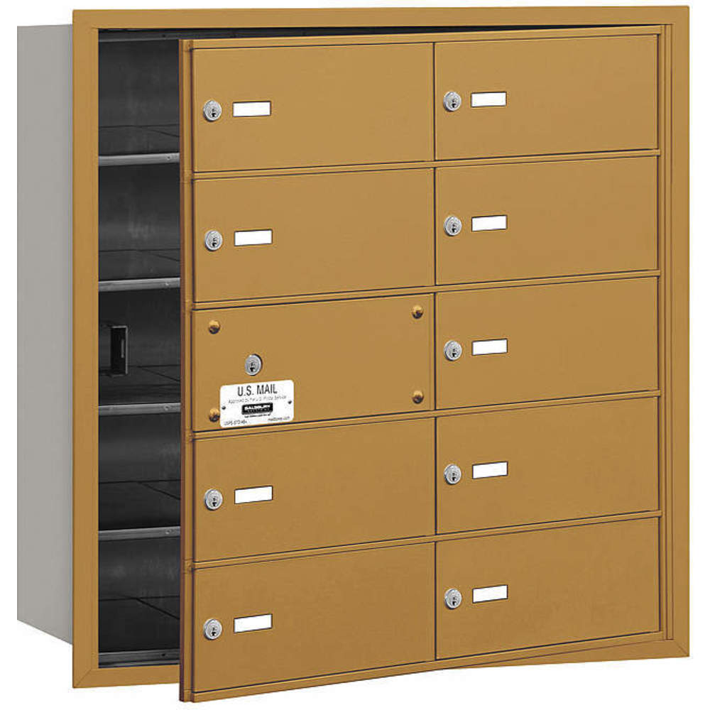SALSBURY INDUSTRIES 3610GFP Horizontal Mailbox Private 10 Doors Gold Fl 29-3/4 Inch