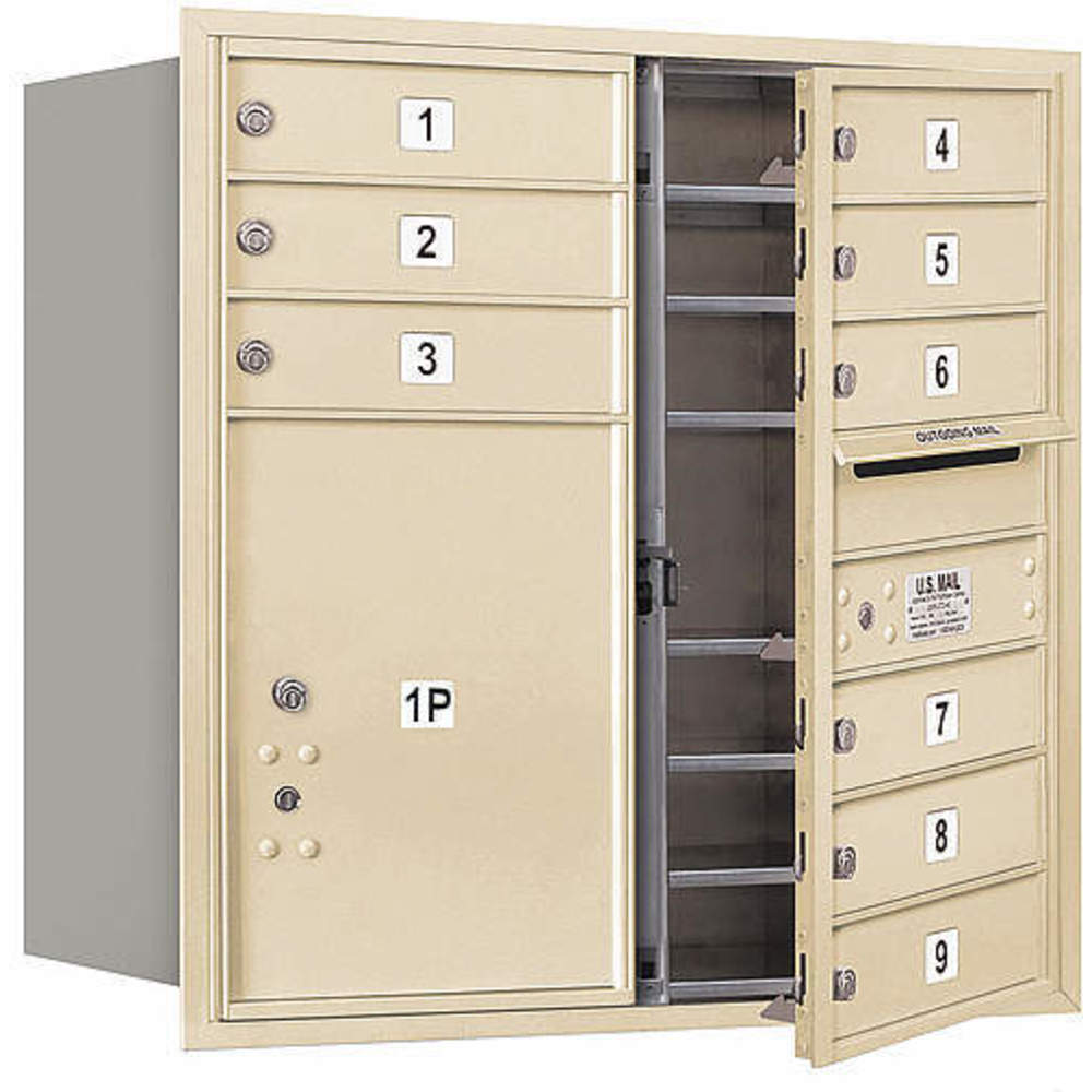 SALSBURY INDUSTRIES 3708D-09SFU Horizontal Mailbox Usps 10 Doors Sandstone Fl 30-1/2 Inch