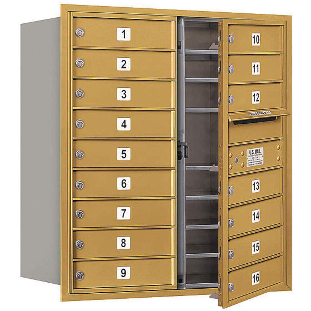 SALSBURY INDUSTRIES 3709D-16GFP Horizontal Mailbox Private 16 Doors Gold Fl 34 Inch