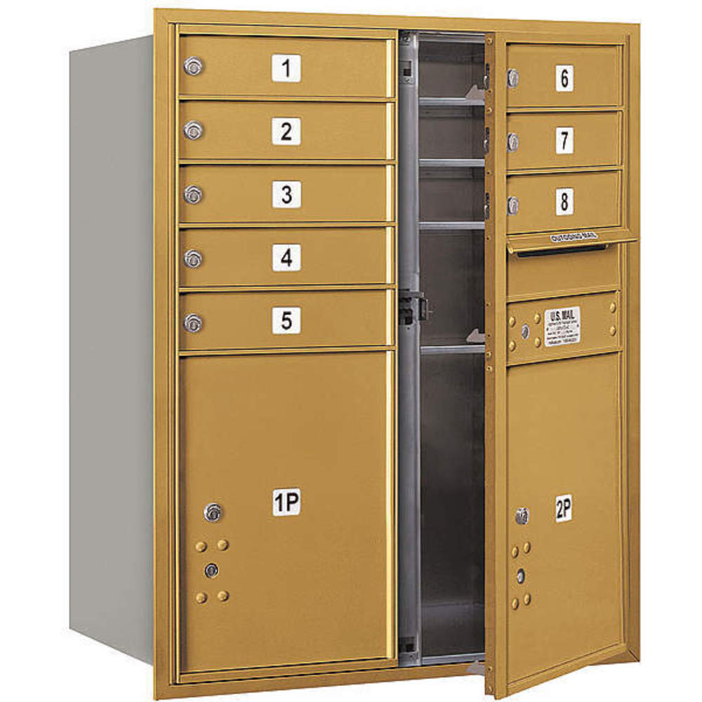 SALSBURY INDUSTRIES 3710D-08GFU Horizontal Mailbox Usps 10 Doors Gold Fl 37-1/2 Inch