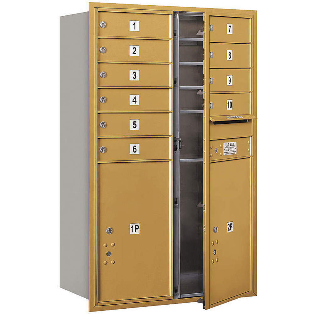 SALSBURY INDUSTRIES 3712D-10GFU Horizontal Mailbox Usps 12 Doors Gold Fl 44-1/2 Inch