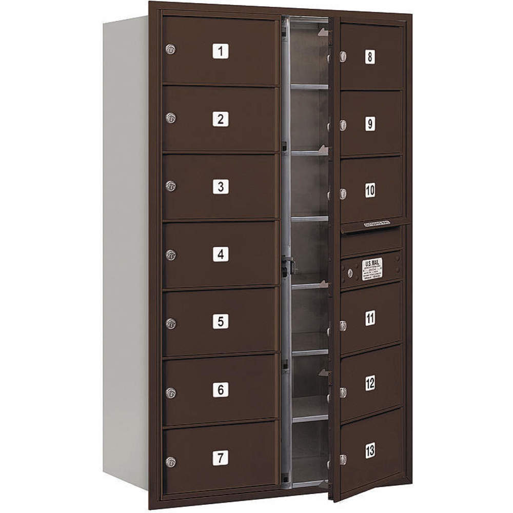 SALSBURY INDUSTRIES 3714D-13ZFP Horizontal Mailbox Private 13 Doors Bronze Fl 51-1/2 Inch