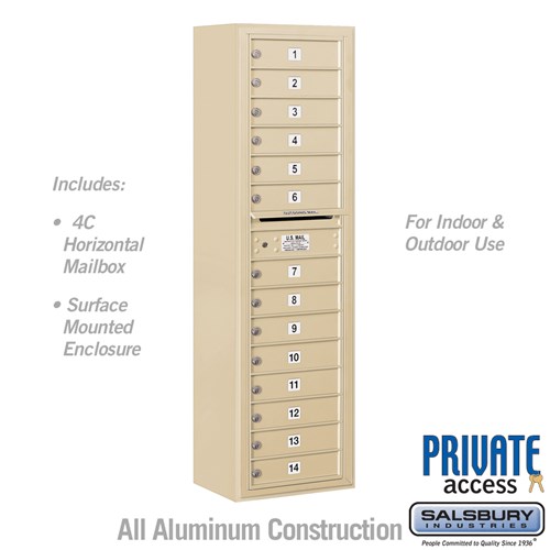 SALSBURY INDUSTRIES 3816S-14SFP Standard Horizontal MailBox, 4C, 17.5 x 57.875 x 17.5 Inch Size, Sandstone