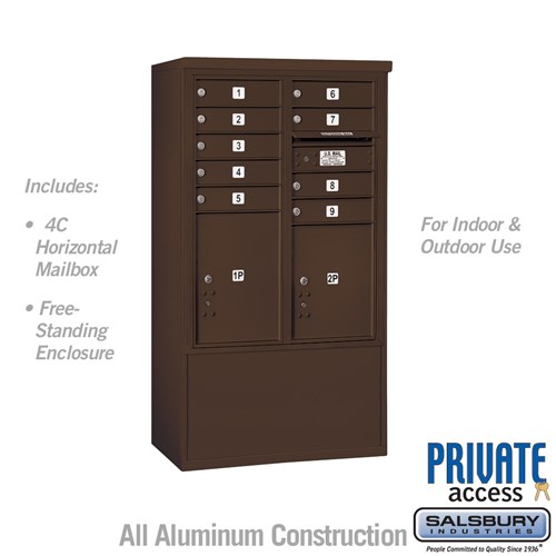 SALSBURY INDUSTRIES 3910D-09ZFP Standard Horizontal MailBox, 4C, 32.25 x 52.75 x 19 Inch Size, 10 Door, Bronze