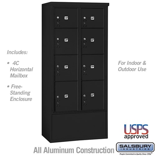 SALSBURY INDUSTRIES 3916D-8PBFU Horizontal Parcel Locker, 32.25 x 72 x 19 Inch Size, Black