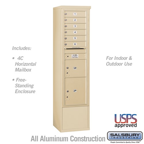 SALSBURY INDUSTRIES 3916S-06SFU Standard Horizontal MailBox, 4C, 17.5 x 72 x 19 Inch Size, Sandstone
