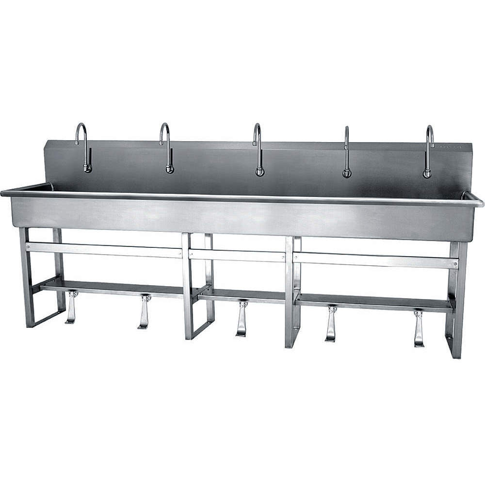 SANI-LAV 510FF Wash Station, 100 x 20 x 18 Inch Size, 10 Hole, Wrist Blade Handles, Stainless