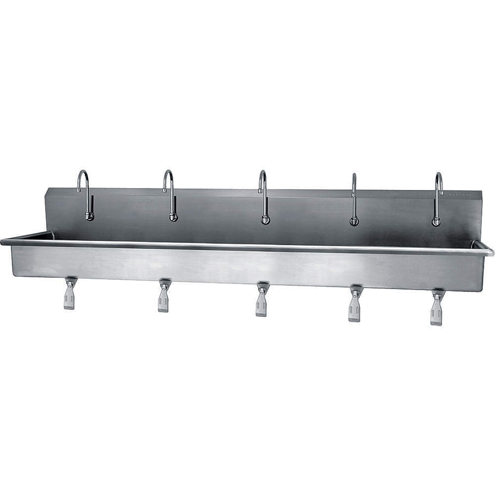 SANI-LAV 510W1 Wash Station, 100 x 20 x 18 Inch Size, 5 Hole, Single Knee Pedal, Stainless
