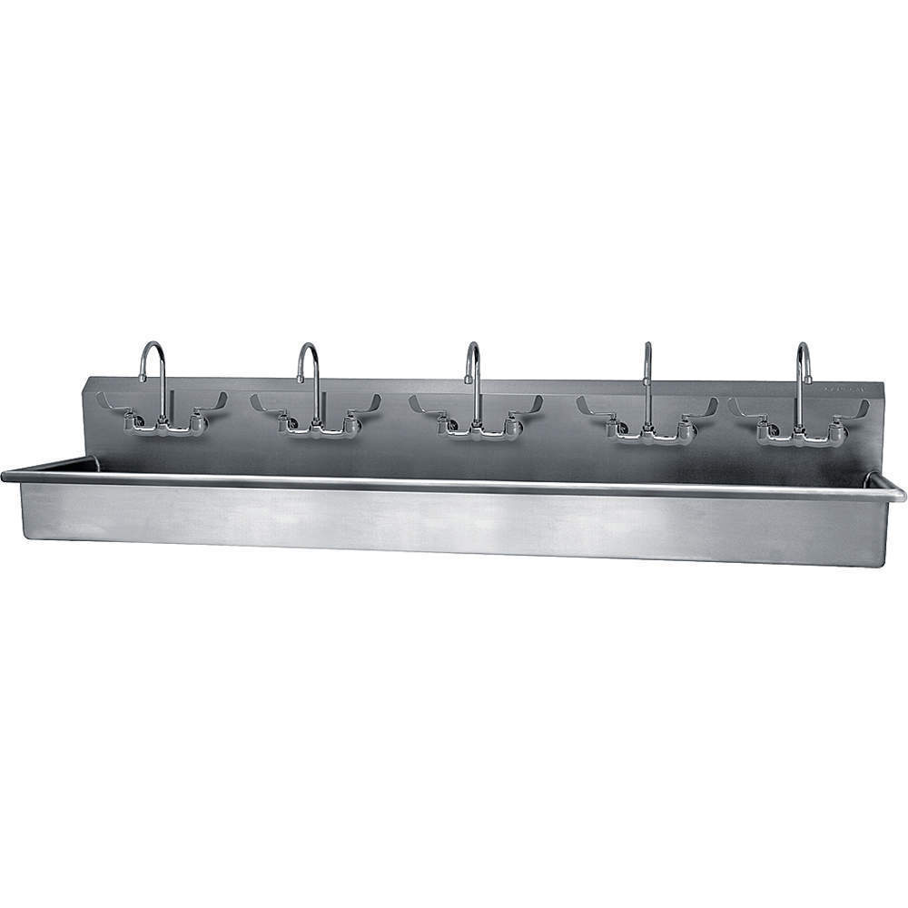 SANI-LAV 510WF Wash Station, 100 x 20 x 18 Inch Size, 10 Hole, Wrist Blade Handles, Stainless