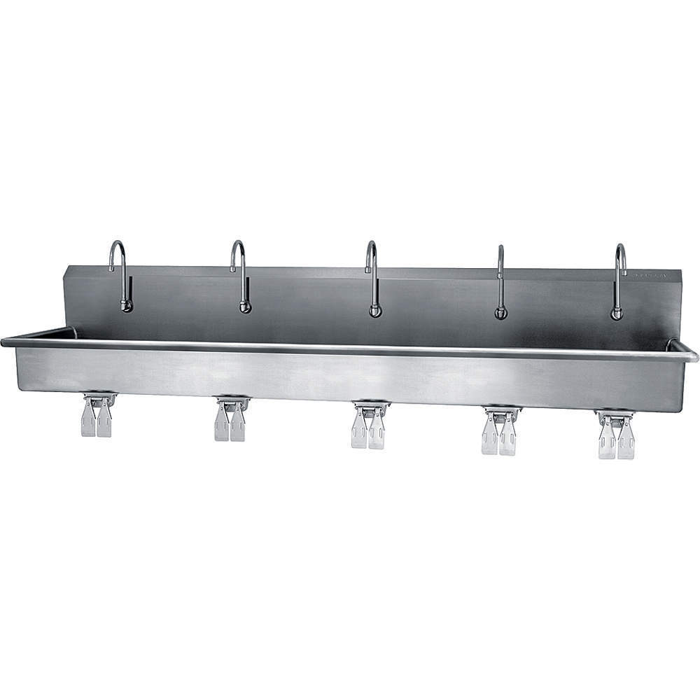SANI-LAV 510WS Wash Station, 100 x 20 x 18 Inch Size, 5 Hole, Double Knee Pedal, Stainless