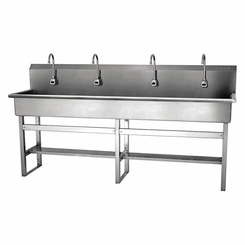 | Includes | (1) Leg Assembly Set, (2) Strainer Assembly With Basket, (4) Battery Powered Sensor Faucet Assembly, (4) Mixing Check Valve, (6) Washers And Nuts |