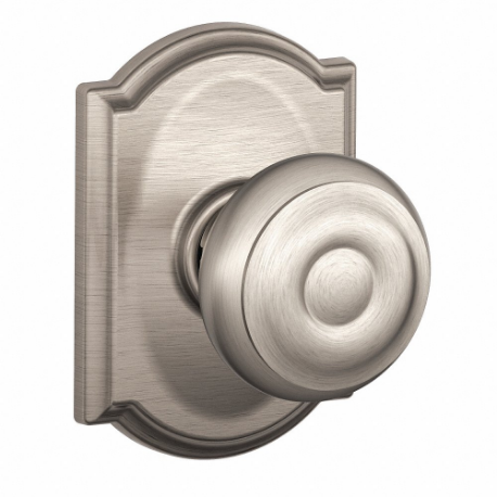 SCHLAGE F10 GEO 619 CAM Knob Lockset, 2, Georgian/Camelot, Satin Nickel, Not Keyed