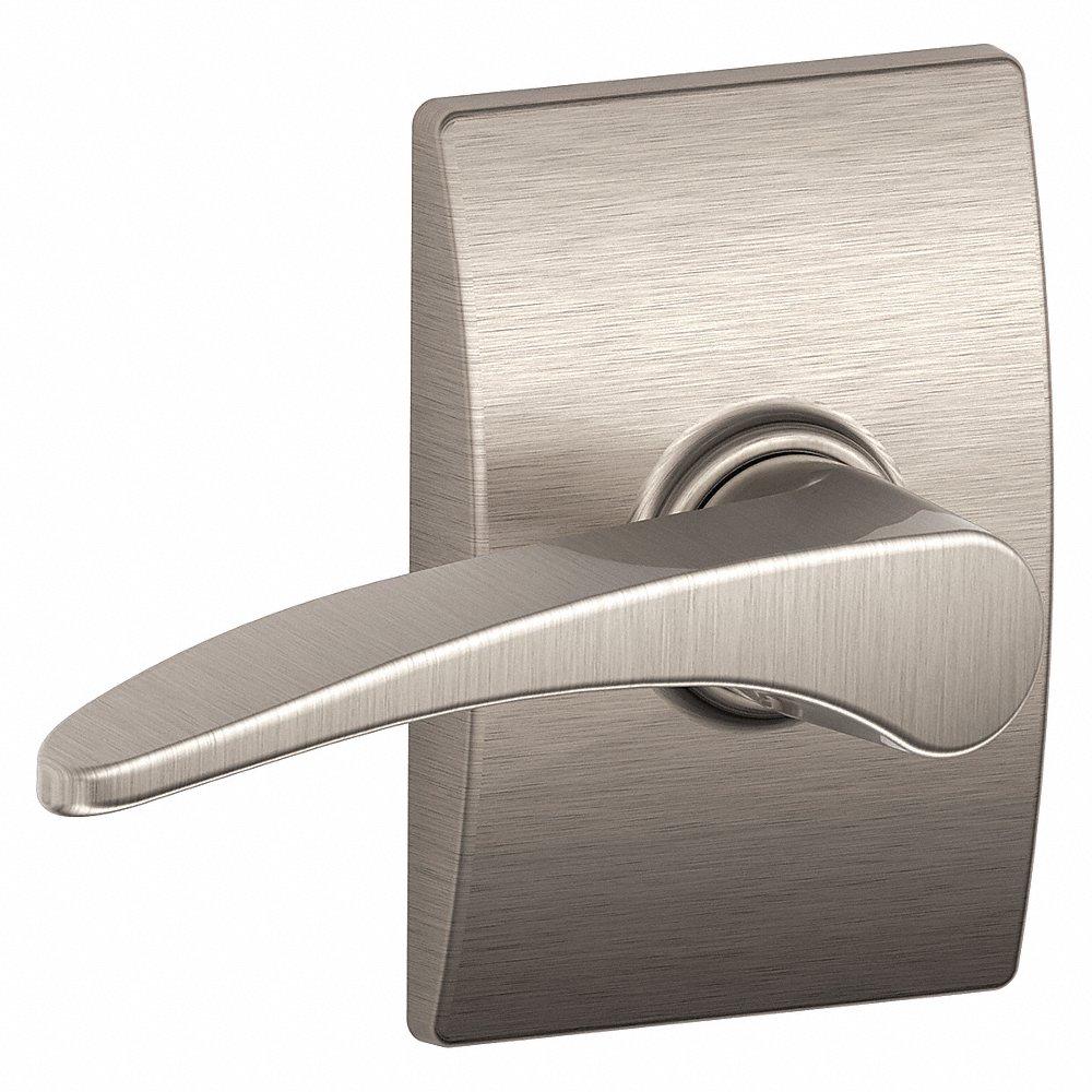 SCHLAGE F10 MNH 619 CEN Door Lever Lockset, Grade 2, Manhattan/Century, Satin Nickel, Not Keyed
