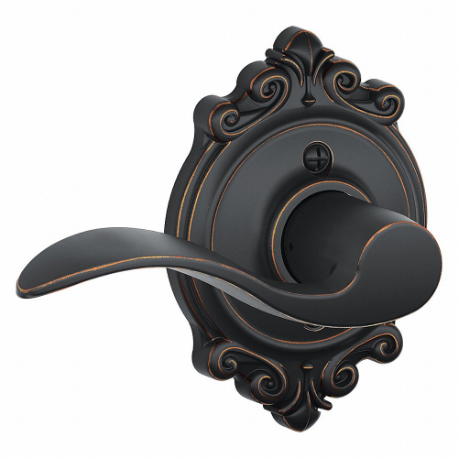 SCHLAGE F170 ACC 716 BRK RH Door Lever Lockset, Grade 2, Accent/Brookshire, Antique Bronze, Not Keyed
