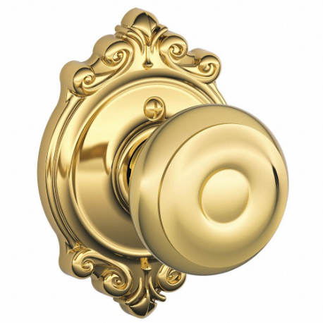 SCHLAGE F170 GEO 605 BRK Knob Lockset, 2, Georgian/Brookshire, Bright Brass, Not Keyed