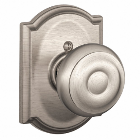 SCHLAGE F170 GEO 619 CAM Knob Lockset, 2, Georgian/Camelot, Satin Nickel, Not Keyed