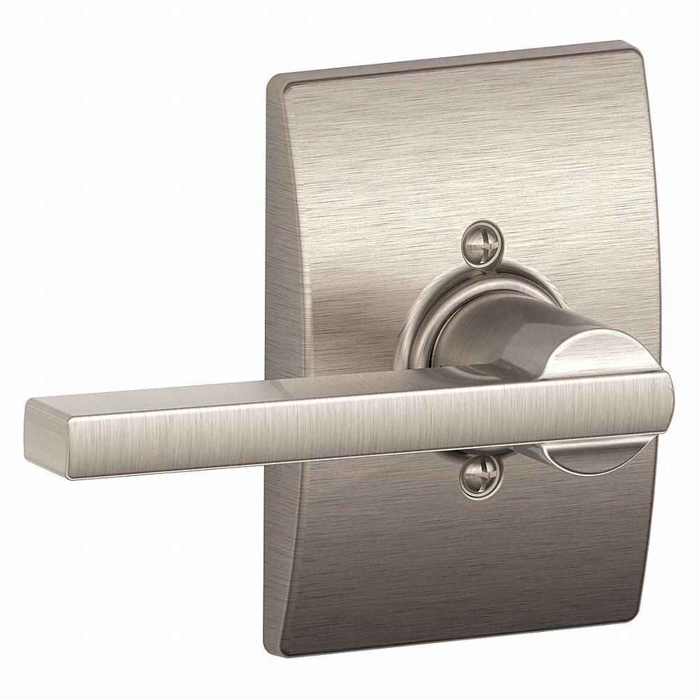 SCHLAGE F170 LAT 619 CEN Door Lever Lockset, Grade 2, Latitude/Century, Satin Nickel, Not Keyed