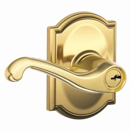 SCHLAGE F51A FLA 605 CAM Door Lever Lockset, Grade 2, Flair/Camelot, Bright Brass, Different, Lever