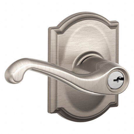 SCHLAGE F51A FLA 619 CAM Door Lever Lockset, Grade 2, Flair/Camelot, Satin Nickel, Different