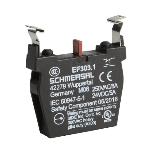 SCHMERSAL EF303.1 Contact Block, Plastic, 1 N.O./1 N.C. Simultaneous Contact, Mounting Position 1