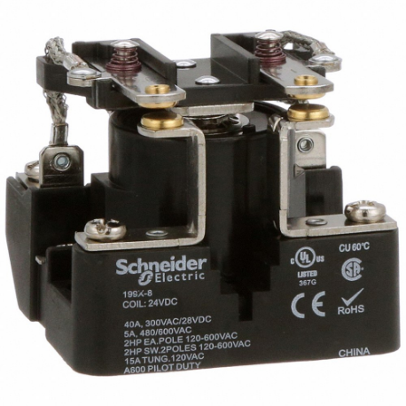 SCHNEIDER ELECTRIC 199X-8 Open Power Relay, Surface Mounted, 40 A Current Rating, 24V DC, 6 Pins/Terminals, DPST-NO