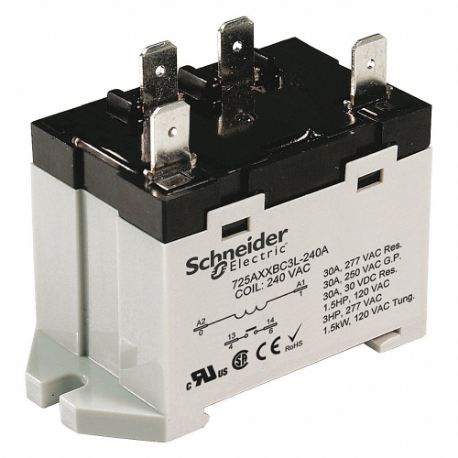 SCHNEIDER ELECTRIC 725AXXSC3ML-12D Enclosed Power Relay, Din-Rail & Surface Mounted, 30 A Current Rating, 12VDC, Spst-No