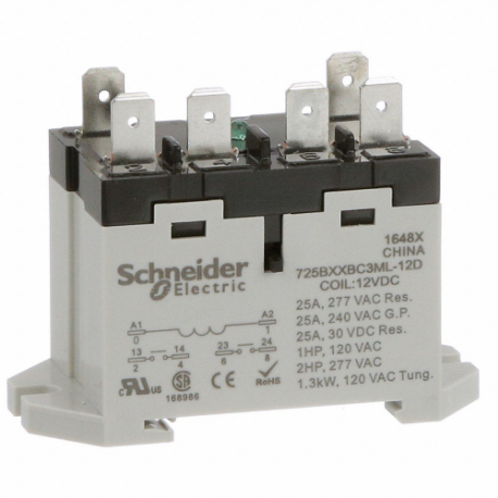 SCHNEIDER ELECTRIC 725BXXBC3ML-12D Enclosed Power Relay, Din-Rail & Surface Mounted, 25 A Current Rating, 12VDC, Dpst-No