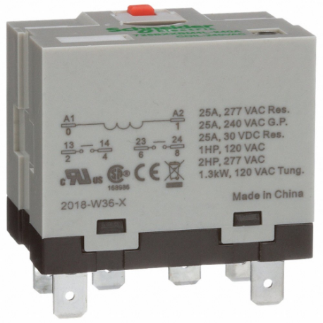 SCHNEIDER ELECTRIC 725BXXBM4L-240A Enclosed Power Relay, Socket Mounted, 25 A Current Rating, 240VAC, 6 Pins/Terminals