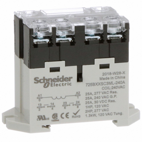 SCHNEIDER ELECTRIC 725BXXSC3ML-240A Enclosed Power Relay, Din-Rail & Surface Mounted, 25 A Current Rating, 240VAC, Dpst-No