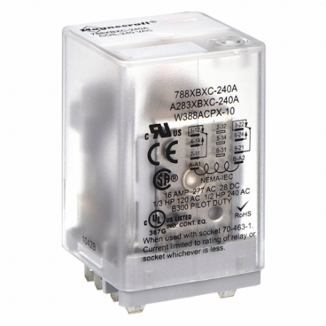 SCHNEIDER ELECTRIC 788XBXC-240A General Purpose Relay, Socket Mounted, 240 VAC, 8 Pins/Terminals, DPDT
