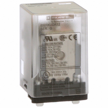 SCHNEIDER ELECTRIC 8501KUDR12V60 Relay, Socket Mounted, 10 A Current Rating, 110V DC, 8 Pins/Terminals, Dpdt
