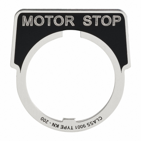 SCHNEIDER ELECTRIC 9001KN237 Legend Plate, Motor Stop, 1/2 Round, Aluminum, Black, 1.9 Inch Height, 2.3 Inch Width