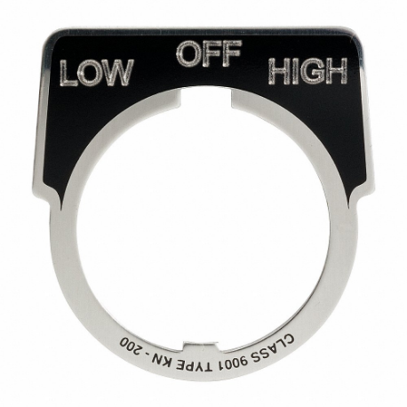 SCHNEIDER ELECTRIC 9001KN265 Legend Plate, Low-Off-High, 1/2 Round, Aluminum, Black, 1.9 Inch Height, 2.3 Inch Width
