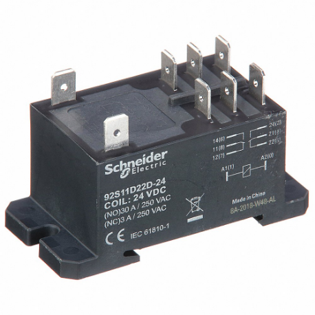 SCHNEIDER ELECTRIC 92S11D22D-24D Enclosed Power Relay, Din-Rail & Surface Mounted, 30 A Current Rating, 24VDC, Dpdt