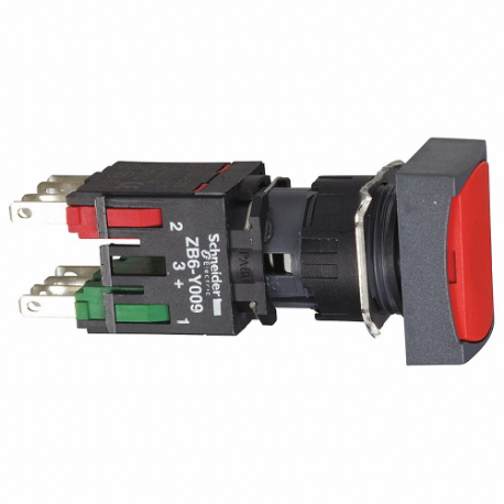SCHNEIDER ELECTRIC XB6DA45B Push Button, 16 mm Size, Momentary, Red, 1 No/1 Nc