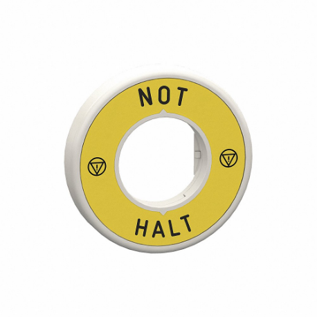 SCHNEIDER ELECTRIC ZBY9W2M230 Legend Ring, NOT-HALT, Round, Plastic, Black/Yellow, 60 mm Ht, 9.3 mm Wd