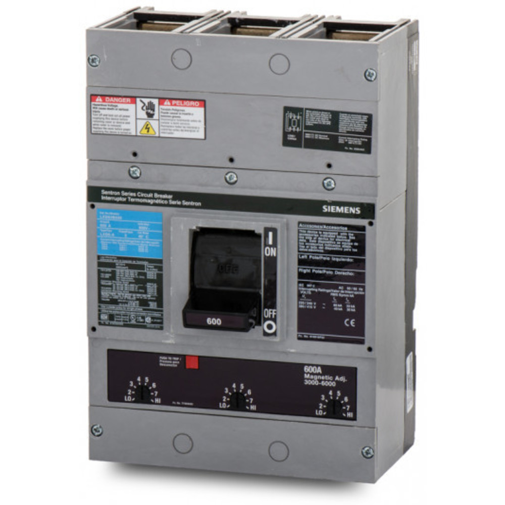Siemens LXD63B600 Sentron moulded case circuit breaker prevents damage to the circuit due to excess current (overloads) or short circuits in connected receptacles, branch circuits, motors and HVACs / HVARs.