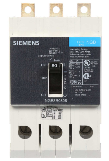 SIEMENS NGB3B080B Bolt On Circuit Breaker Ngb 80 Amp 600vac 3p 25kaic@480v