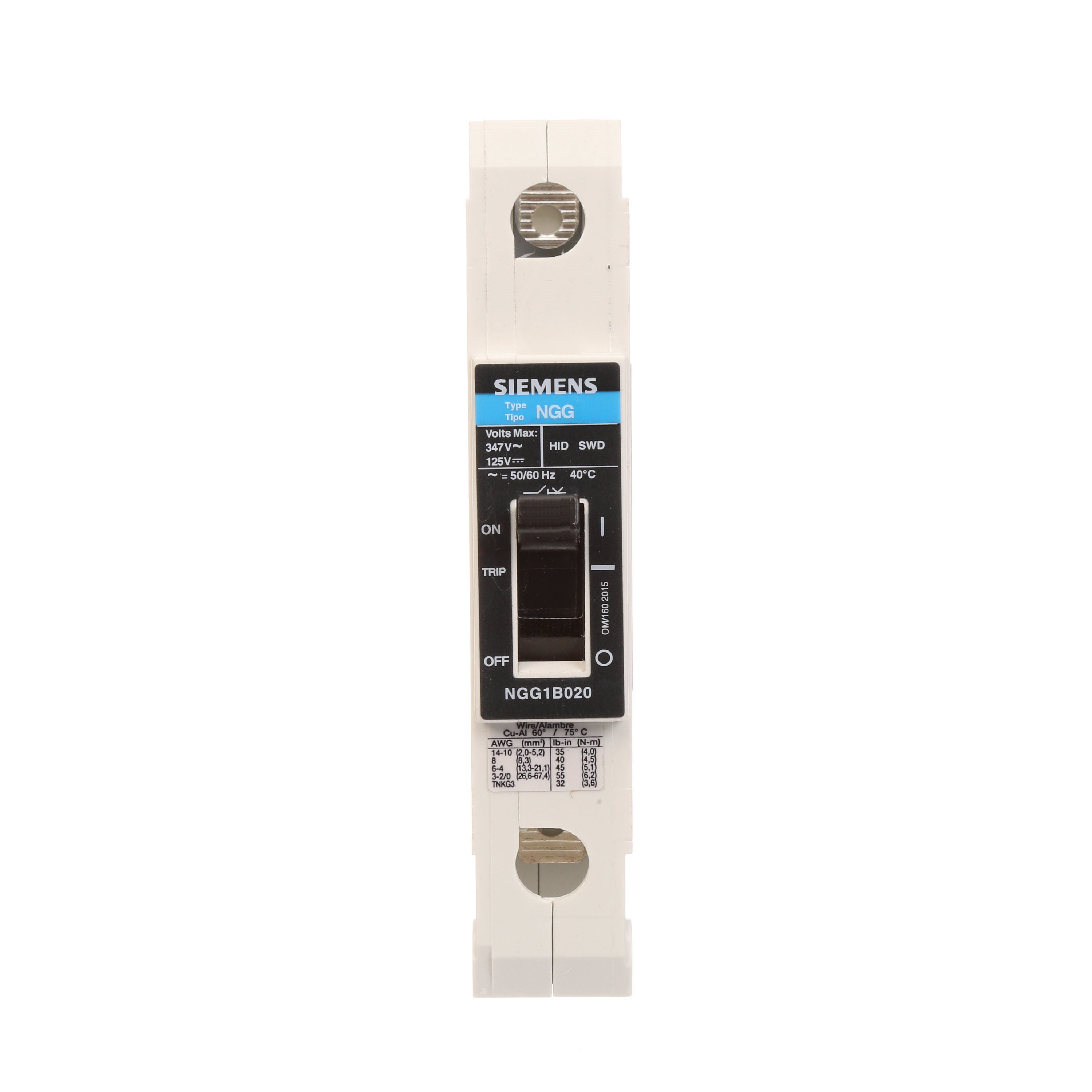 SIEMENS NGG1B050L Circuit Breaker, Feed-Through, 50 Ampere, 25kAIC at 480V