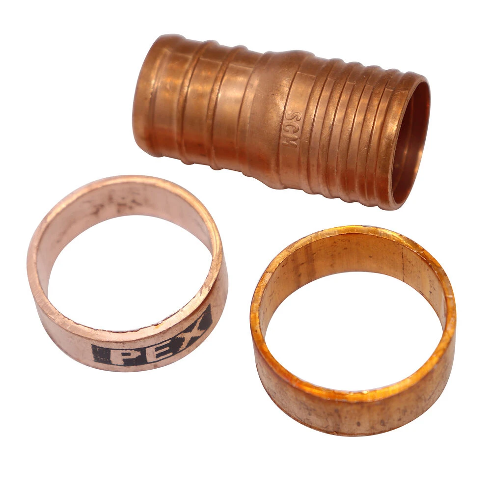 SIOUX CHIEF 645X3GPK2 Straight 1-Piece Pipe Coupler, With Crimp Rings, 3/4 in, PEXxPB, Copper