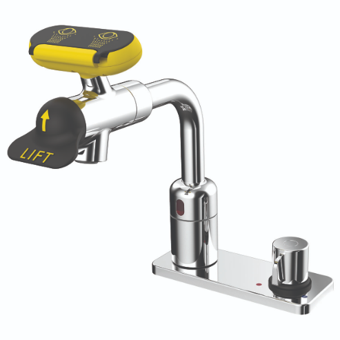 SPEAKMAN SEF-18102 Eyewash Faucet, Battery Powered Sensor, With Above Counter Mixer
