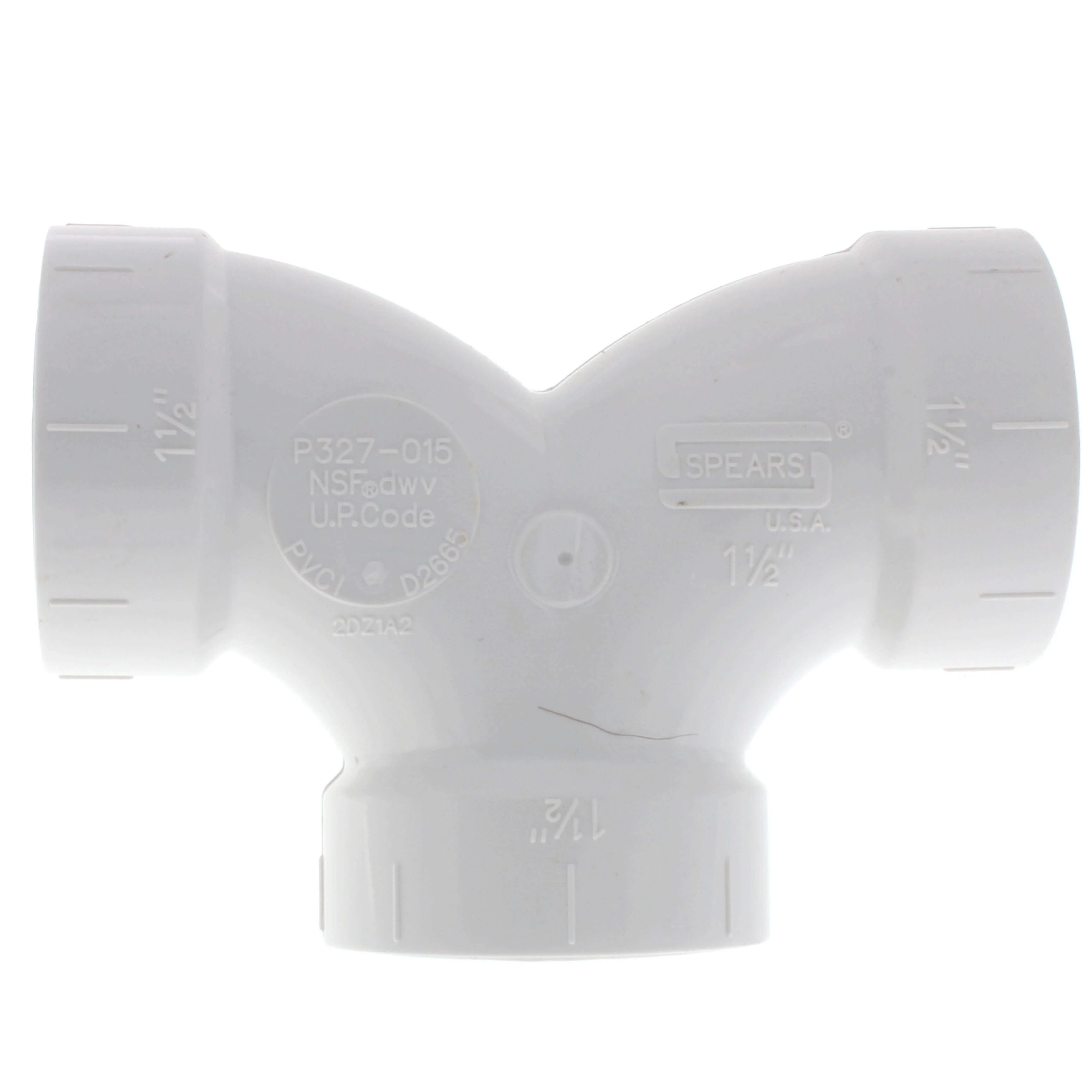 SPEARS VALVES P327-015 Drain Waste Vent, 1/4 Double Bend, Hub x Hub x Hub, 1-1/2 Size, PVC